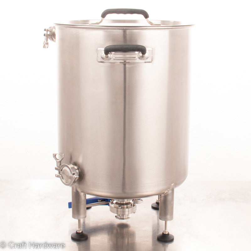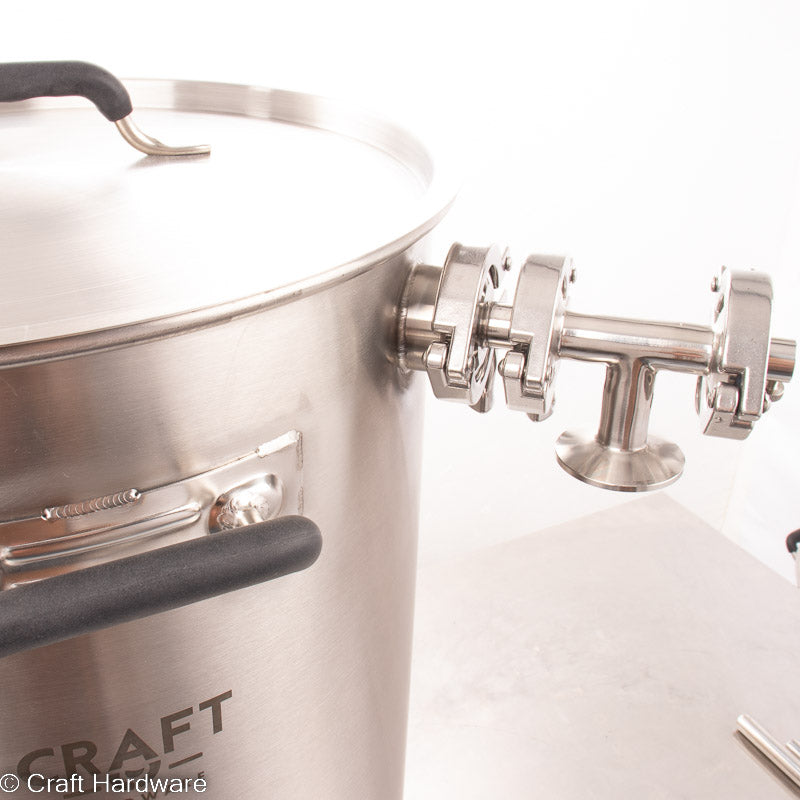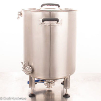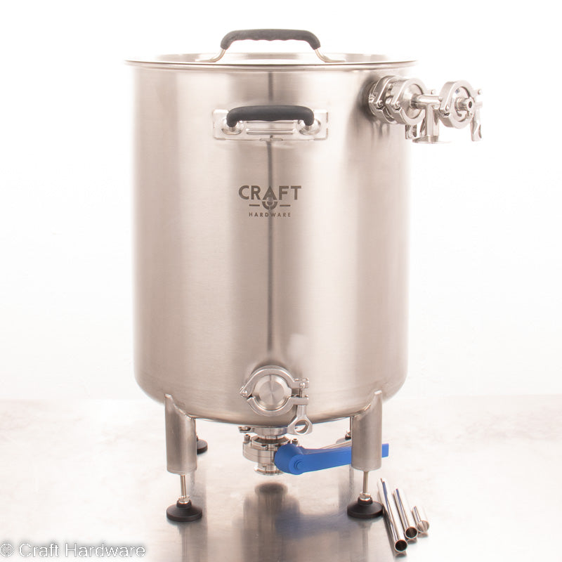 For recirculation, you need access to the lower Tri-Clamp port. If you are using a regular table as a brew stand, you can easily do this with the 14 cm leg extensions (sold separately). Please note that 80-90 cm high tables may be too high to comfortably operate the kettle. Alternatively, you can bolt the kettle directly to the floor with our 45 or 65 cm leg extensions and footplates. You can attach the pump to the legs of the kettle with a pump bracket. You can also build your own brew stand or choose a high-quality brew stand from Craft Hardware in the store.