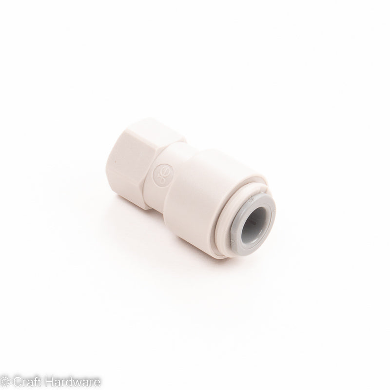 A John Guest brand push fit adapter to connect 8mm tubing to an NC keg ball lock disconnect. Just screw on the adapter (7/16" threads) to your ball lock disconnect. Then push in an 8mm polyethylene hose for a blow off tube or to connect your keg to the Fill Station bottle filler. Our 8x2mm polyethylene tubing gives you 4mm of ID and works perfectly with this fitting.