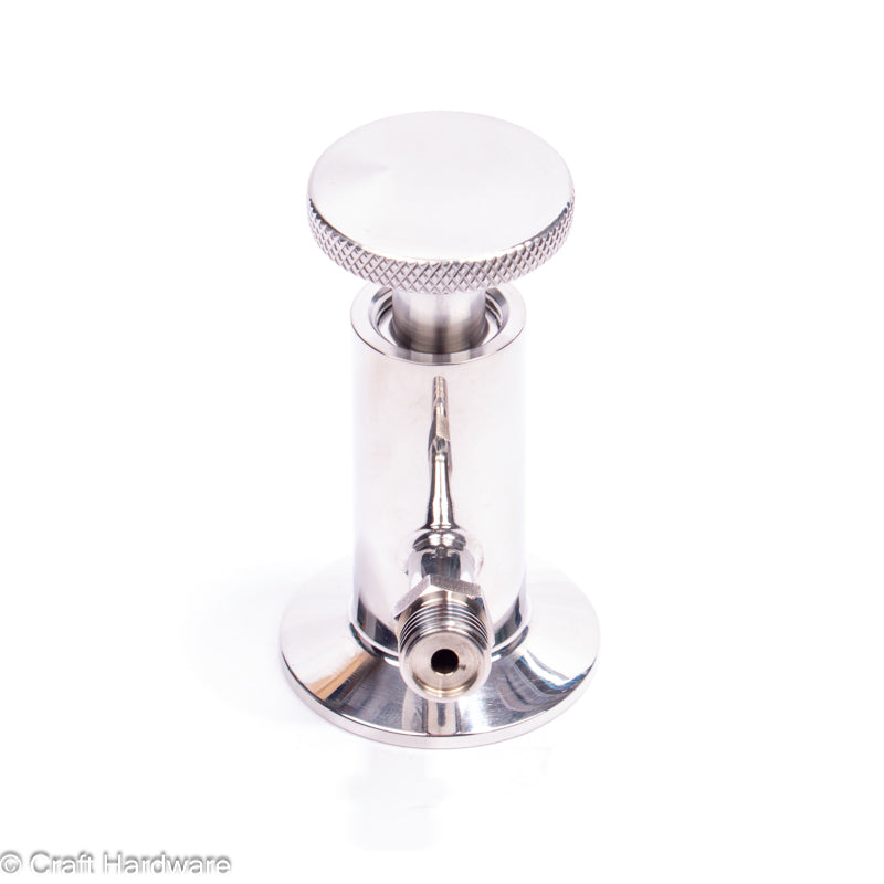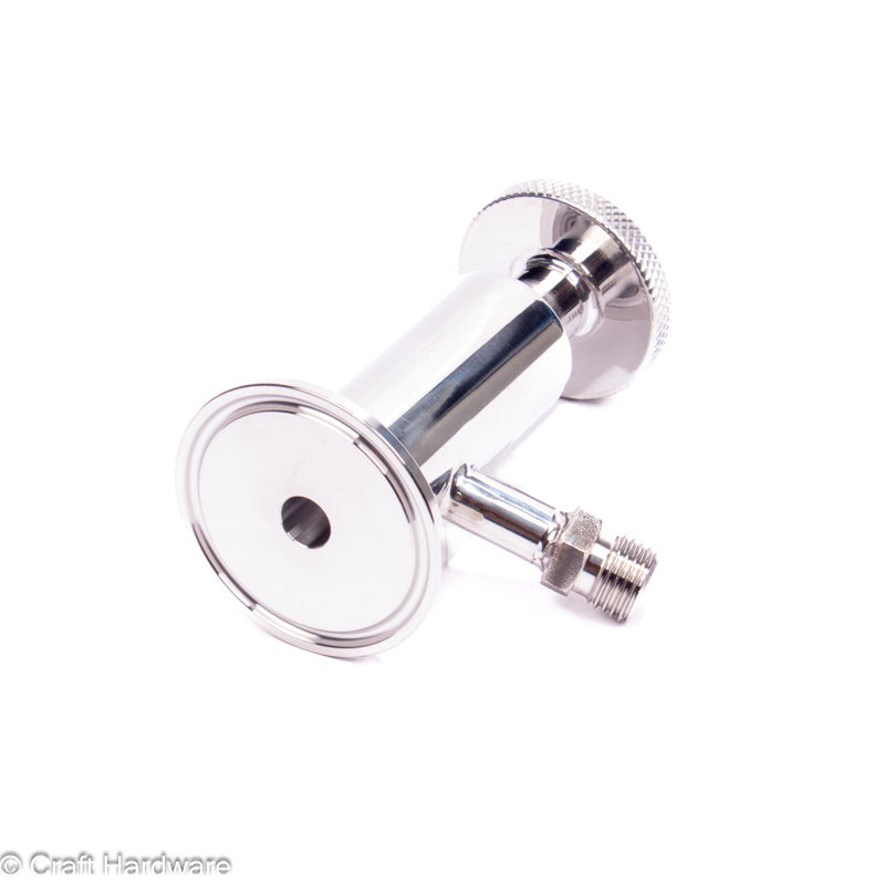 Tri-Clamp sample valve with 1.5" Tri-Clamp flange and pigtail. These are used when sampling carbonated beer under pressure in order to reduce the foam in the sample container.
