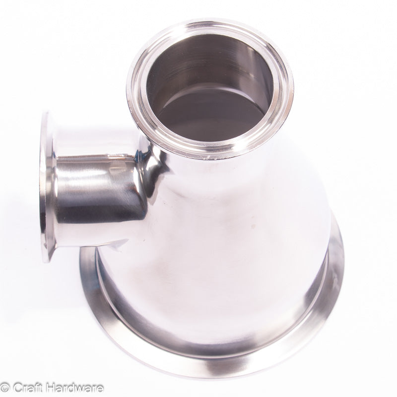 4" to 2" Tri-Clamp concentric tee reducer. Adapt between 4" and two 2" Tri-Clamp without any hard steps in the flow path.