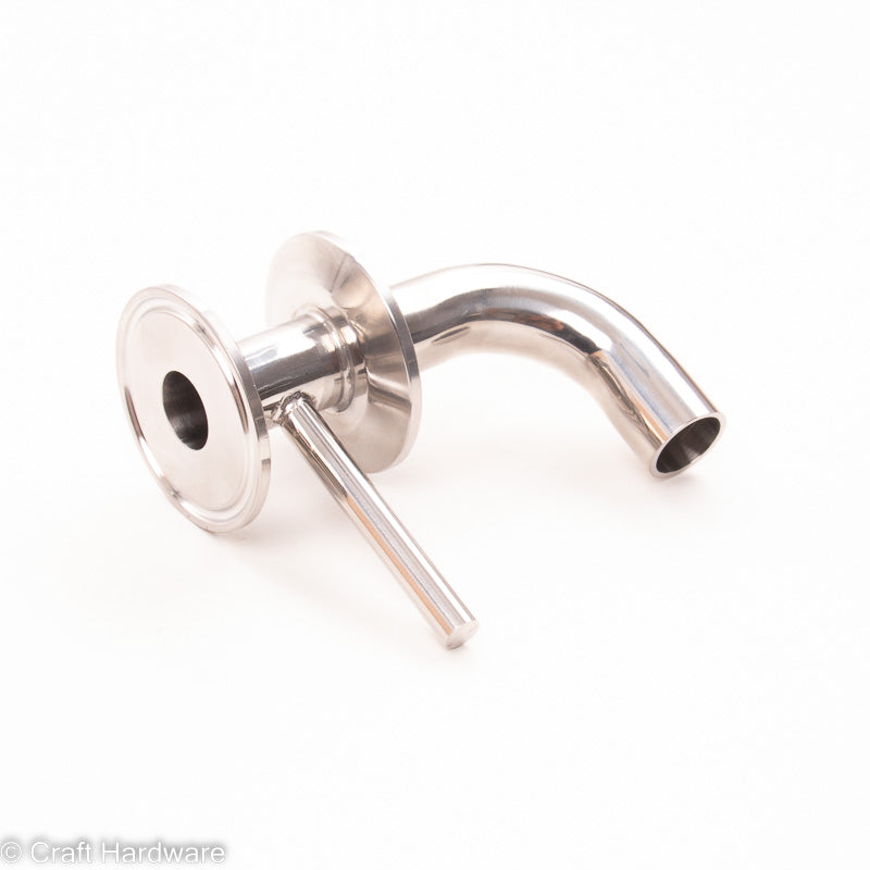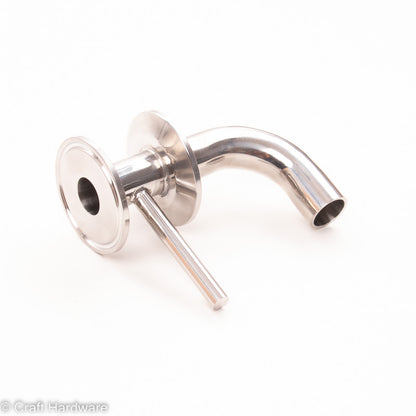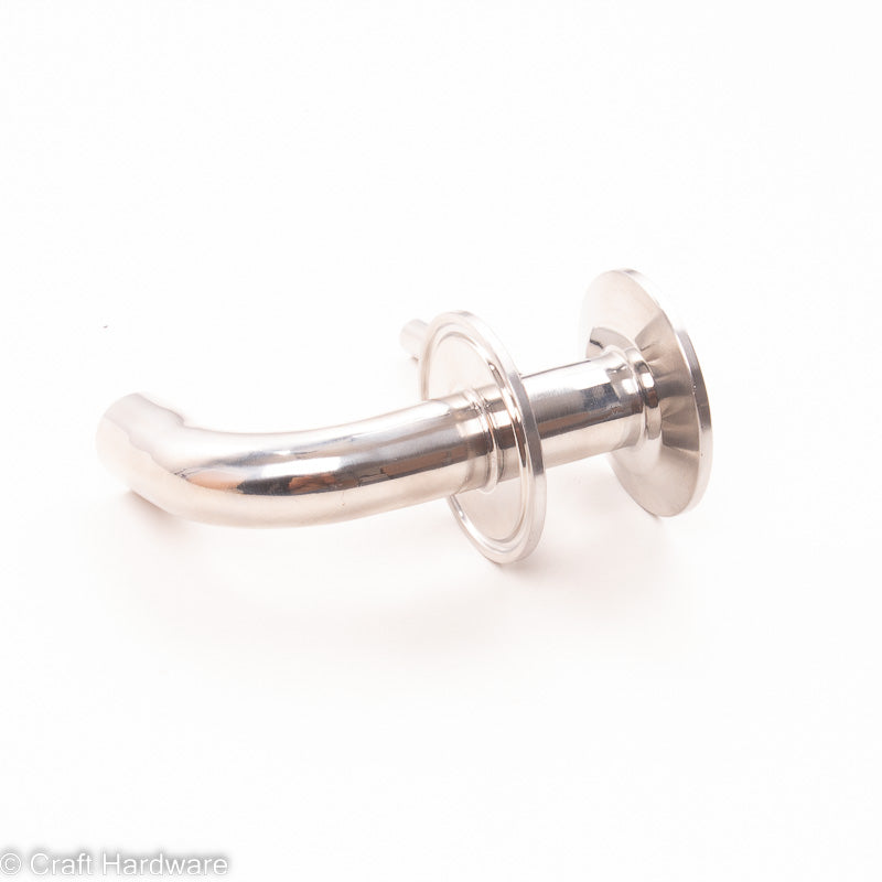 Dieser Tri-Clamp Abfüllarm hat einen Griff, der das Drehen erleichtert und außerdem die aktuelle Position des Arms im Fermenter anzeigt.
