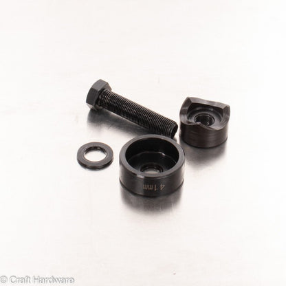 Eine 41-mm-Lochstanze für unsere Schottverschraubungen. Mit diesem 41 mm Locher kannst du das Loch in deinem Deckel oder Kessel für die Tri-Clamp Schottverschraubungen machen. Maximale Dicke des Edelstahls: 1,5 mm.