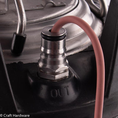Um es zu installieren, schraubst du einfach den Getränkeventil ab und nimmst das vorhandene Tauchrohr aus dem Fass. Das vorhandene Degen durch das Tauchhülse ersetzen. Entferne den Ventilinnenteil mit Feder und schraube den offenen Ventil wieder auf das Fass. Jetzt kannst du deinen Temperaturfühler in der Höhe deiner Wahl in die Tauchhülse einsetzen. Wenn du fertig bist, kannst du einfach der originale Degen wieder einsetzen und das Fass wie gewohnt verwenden.