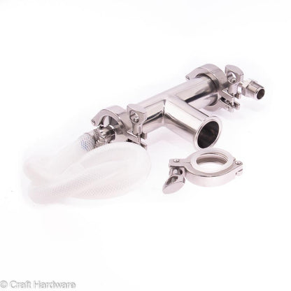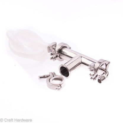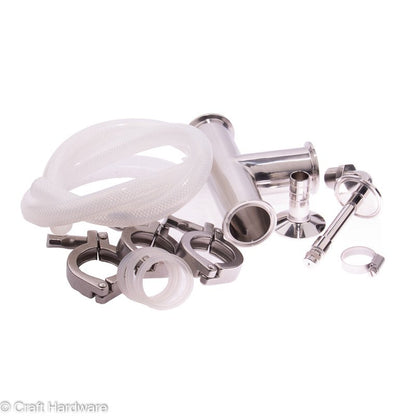 Der Dampfkondensator ist eine gute Lösung für das Problem, mit dem wir alle beim Brauen in Innenräumen konfrontiert sind: Was tun mit dem Dampf? Der Dampfkondensator ist eine einfache Lösung, die an deinem Sudkessel montiert werden kann. Eine Wasserzufuhr an den Kondensator anschließen, den Kessel abdecken und den Kondensator beim Kochen einschalten. Das kalte Wasser bewirkt eine Phasenänderung des aus dem Kessel austretenden Dampfes und das nun erwärmte Wasser wird über den Ausgangsschlauch abgelassen. Eine vollständige Erklärung des Konzepts findest du in diesem Blog-Artikel.