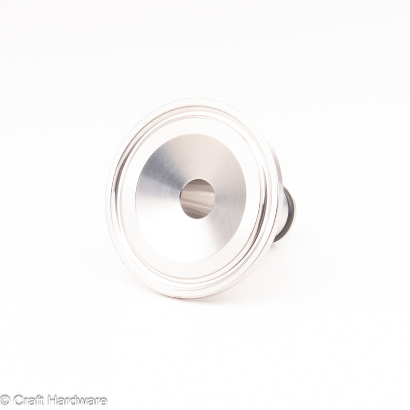 Dieser Adapter nimmt 1/2" Gardena Schlauchverbinder auf und hat einen 1,5" Tri-Clamp-Flansch.