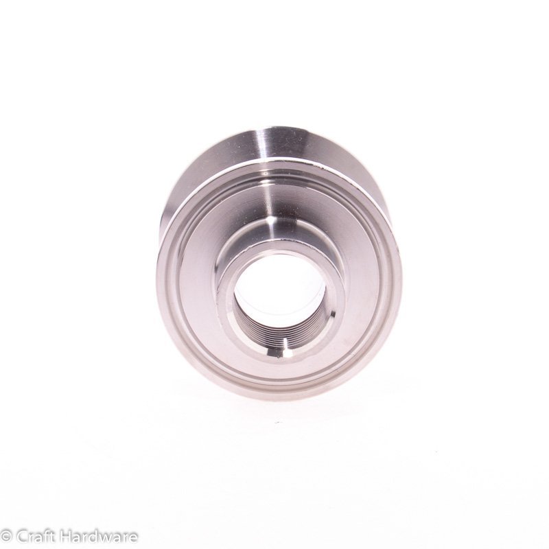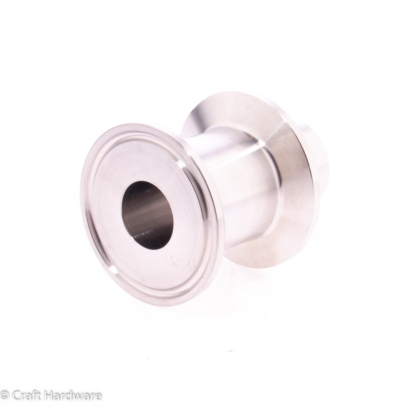 Tri-Clamp Gewindeadapter mit 1/2"-Innengewinde. Die Gewinde sind nur an einem Ende vorhanden; dieser Adapter ist für den Anschluss beliebiger 1/2"-Anschlüsse im Inneren des Kessels vorgesehen.