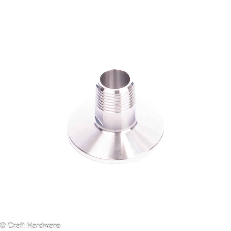 Tri-Clamp Gewindeadapter 1/2″ BSPT Aussengewinde kegelig. Der Innendurchmesser wird auf der Seite der Tri-Clamp-Klemme des Fittings auf 15 mm reduziert.