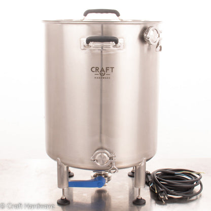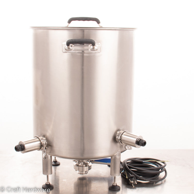 Ein 85L Kochkessel Set mit Bodenablauf, in einer Basisversion, die du mit allen Zubehörteilen erweitern kannst, die du für die von dir gewünschten Funktionen brauchst. Du entscheidest, wie du den Kessel entleeren willst, welche Art von Brauständer du verwenden willst und ob du Kesselbeinverlängerungen oder anderes Zubehör wie eine Pumpe, einen Whirlpoolarm, oder Dampfkondensator hinzufügen willst. Im Shop findest du alles, was du brauchst, um deine Wunsch-Brauanlage komplett zusammenzustellen.