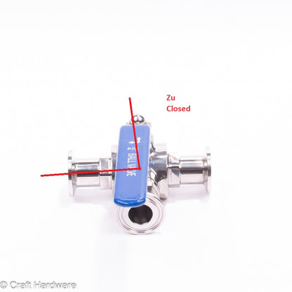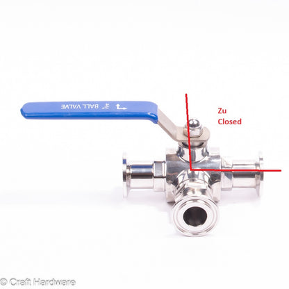 Kugelhahn 3-Wege L-Bohrung Tri-Clamp DN 15 (34 mm)