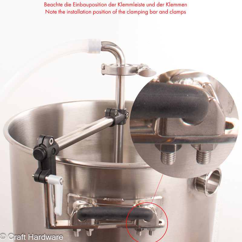 Wenn du den Arm zwischen den Kesseln versetzen möchtest, ist eine zweite Griffklemme separat im Shop erhältlich.