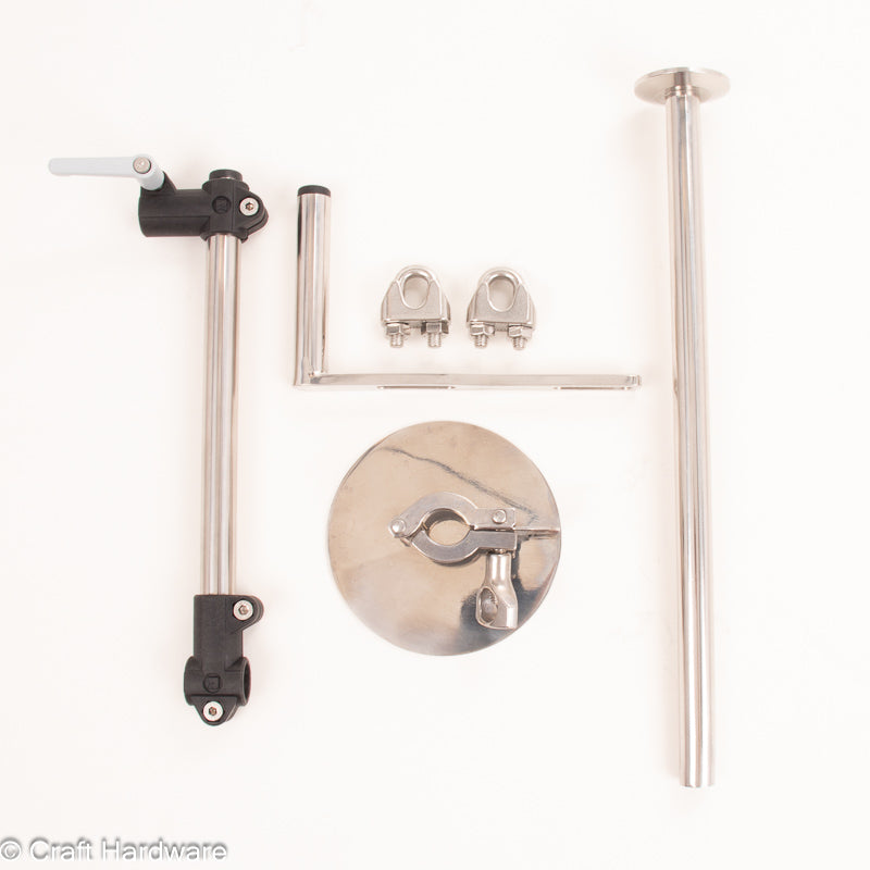 Der Arm kann schnell von deinem Kessel komplett abgenommen werden, indem du den Klemmhebel lockerst. Natürlich muss der Deckel beim Maischen offen sein. Das Set enthält alle Teile, die auf dem zweiten Foto zu sehen sind. Zusätzliche Fittings (T-Stücke, Schlauchtüllen, Schläuche) sind im Shop erhältlich.