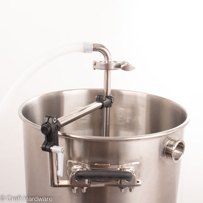 Der höhenverstellbare Sparge Arm ist auch eine gute Möglichkeit, einen "Whole Kettle Filter" für deinen Kochkessel zu bauen: In Kombination mit dem 400 Mikron Brew Bag kannst du deine Würze aus dem Boden des Kessels zurück in den Brew Bag leiten und so Hopfen und Heißwürze auffangen. Nach dem Abkühlen der Würze kannst du den Sparge Arm über den Würzespiegel heben und weiter rezirkulieren, um die Würze zu belüften.