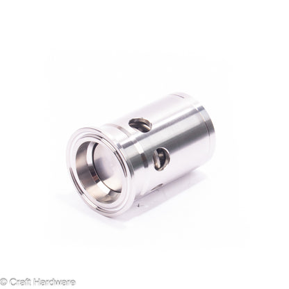Ein kompaktes 1,5" Tri-Clamp-Überdruckventil und Vakuumbrecher. Es lässt den Druck bei der gewählten oberen Druckbelastung ab und unterbricht das Vakuum bei -1,5 PSI (ca. -0,1 bar).